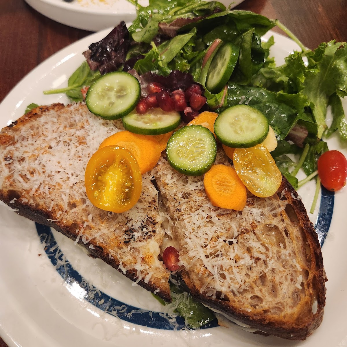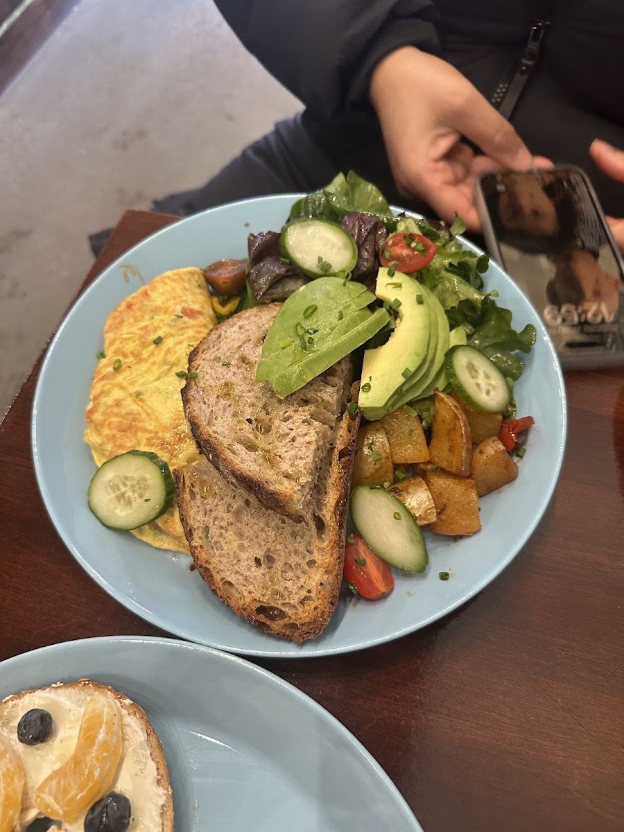 The menu leans into wholesome, organic ingredients with a creative twist — think avocado toast topped with a perfectly cooked farm egg or a grilled cheese that pairs seasonal fruits like pear and peaches for something both familiar and unexpected. Their bagel offerings stand out with unique combinations like the dill pickle cream cheese bagel or the pistachio spread with fresh berries and nuts, showing how Victorian Cafe rethinks standard cafe fare without losing cozy appeal.