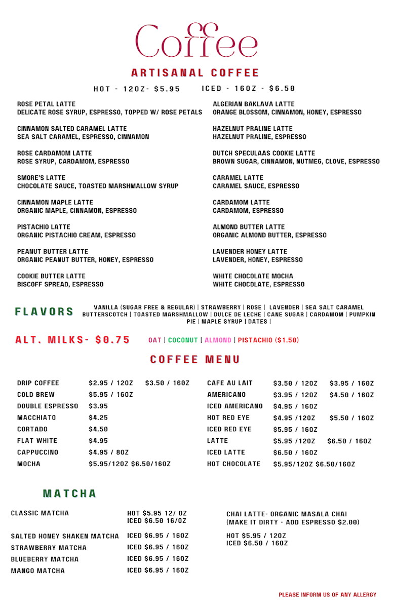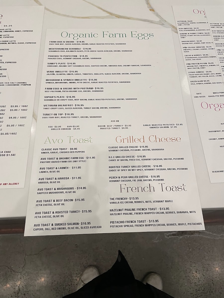 The menu is well-suited for casual dining, brunch, or coffee breaks, accommodating quick orders or relaxed meals. Its emphasis on organic ingredients and diverse flavor combinations offers options for various dietary preferences.